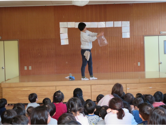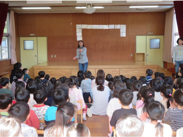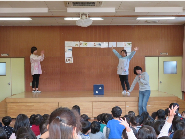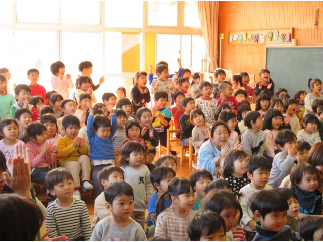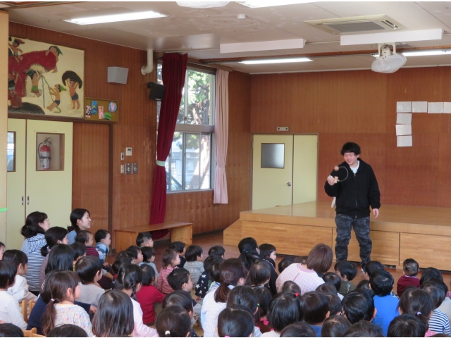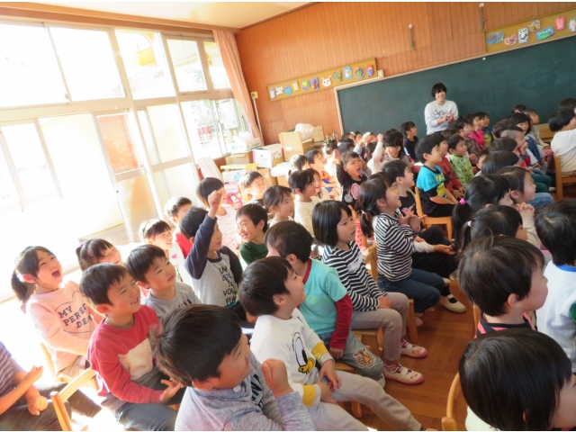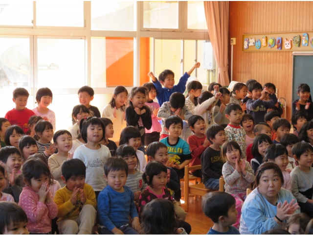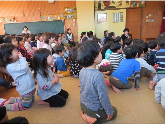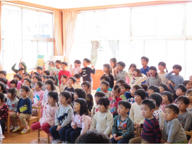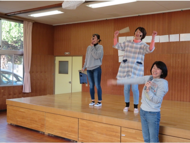 正月に昔の人はどんなあそびをして過ごしていたかを、密かに練習を重ねた職員が、子どもたちに紹介しました。