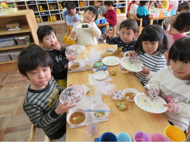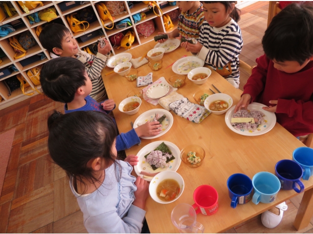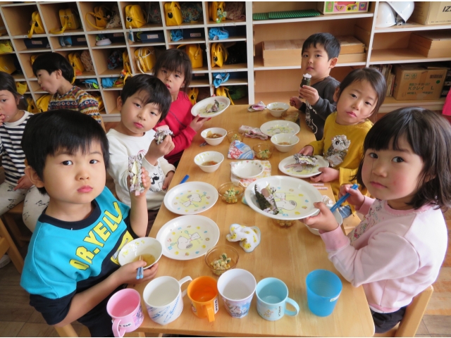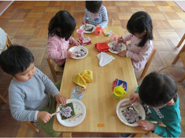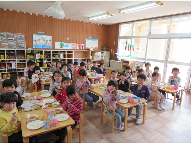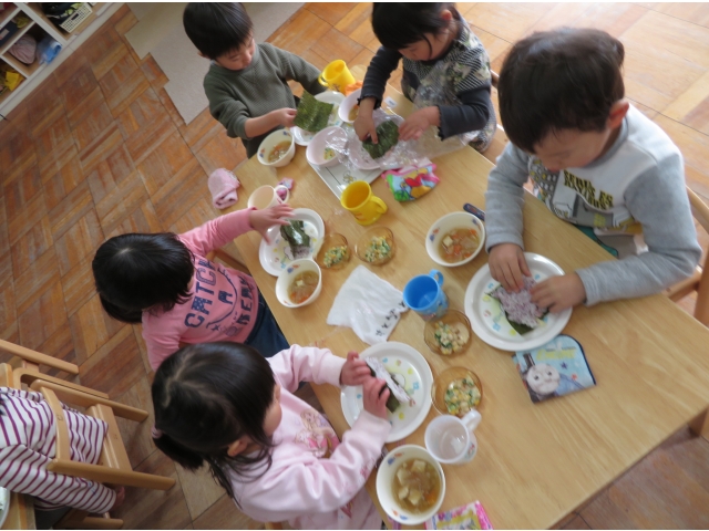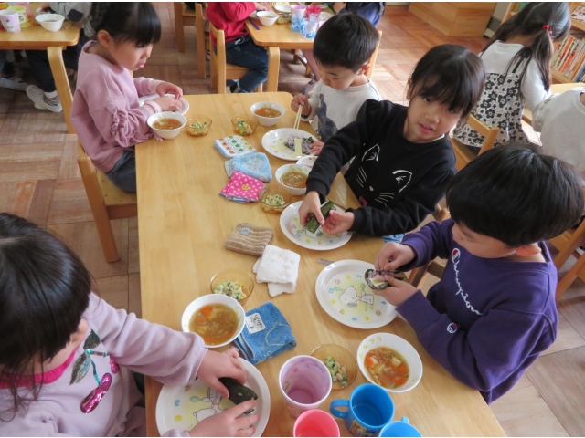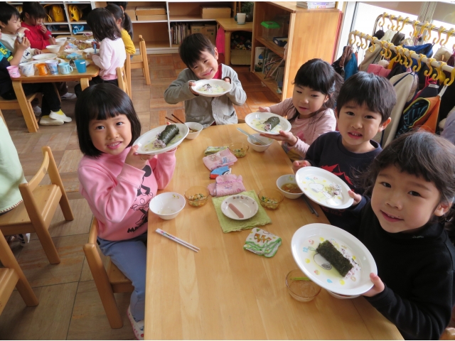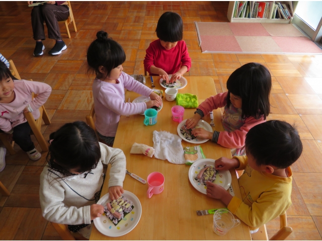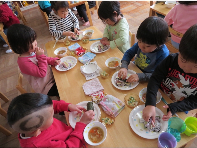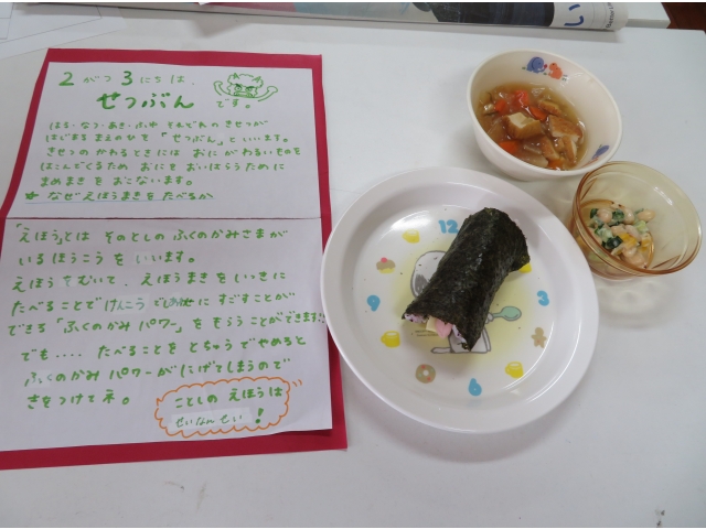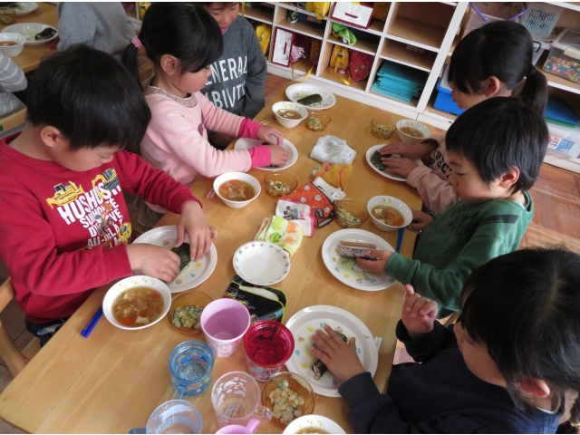 自分の中のオニを追い出した後はみんなで恵方巻を作って食べました。
