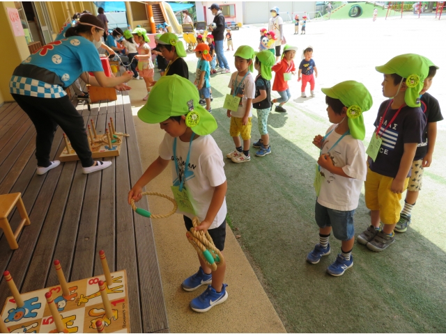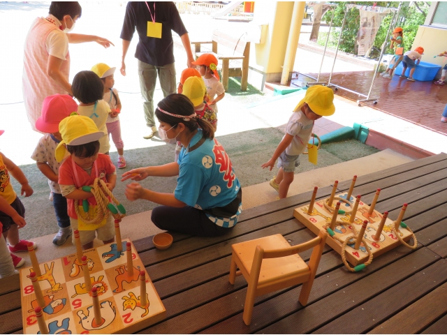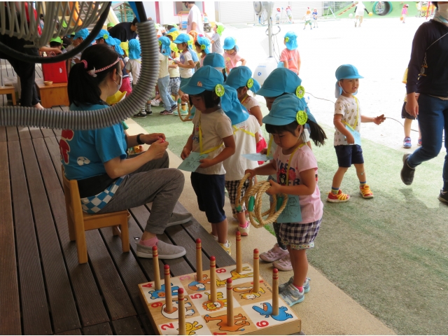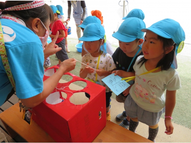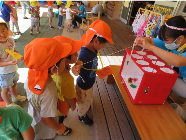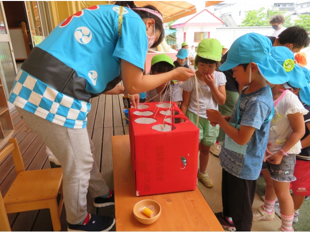 「きょうはたのしかった~!」と保育士に伝えてくれたり、お家に帰ってから「なつまつりやったよ。たのしかった!」とお話ししたりしてくれたようです。みんなの楽しそうな顔がいっぱいで、先生たちもとっても楽しかったよ!