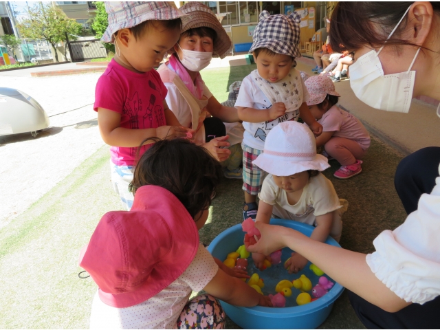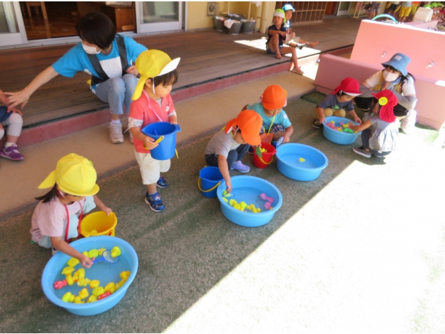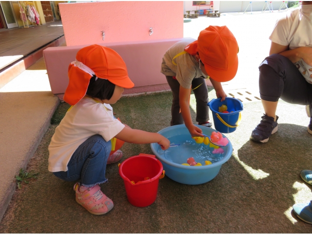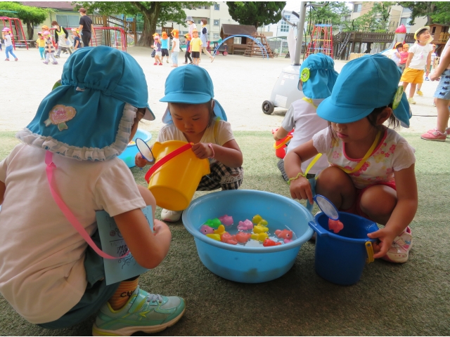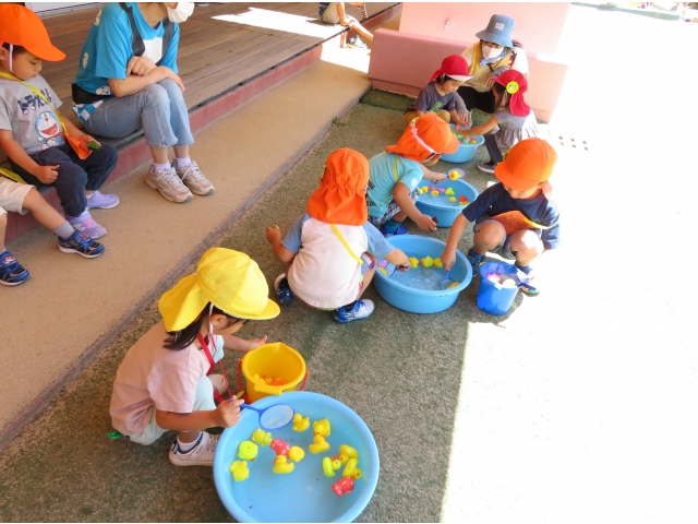 こちらは、きんぎょ、あひるすくいです。たくさんすくいたい!