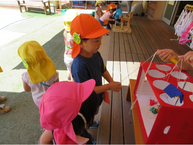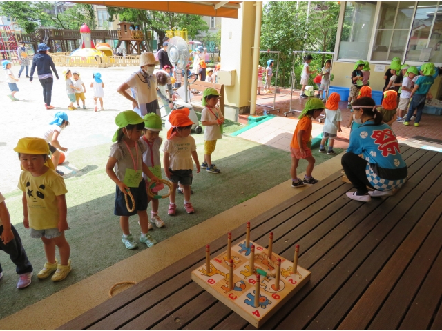 ここは、輪投げ。上手に入るかな?