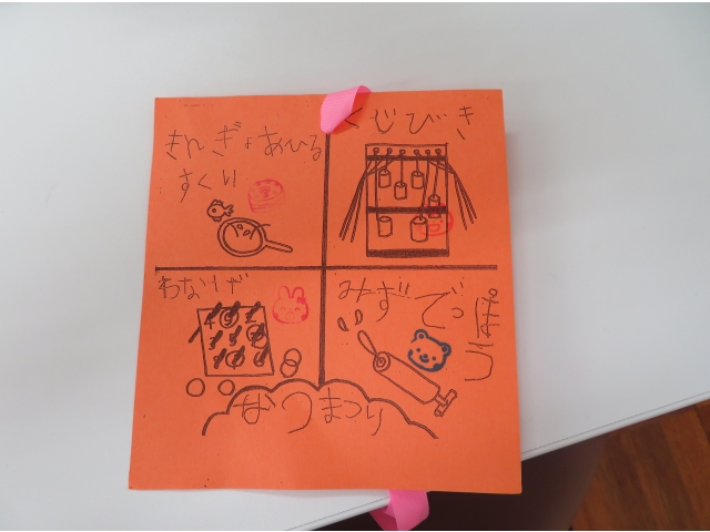 - もちもののスタンプカード。年長さんと先生たちが一緒に作りました。