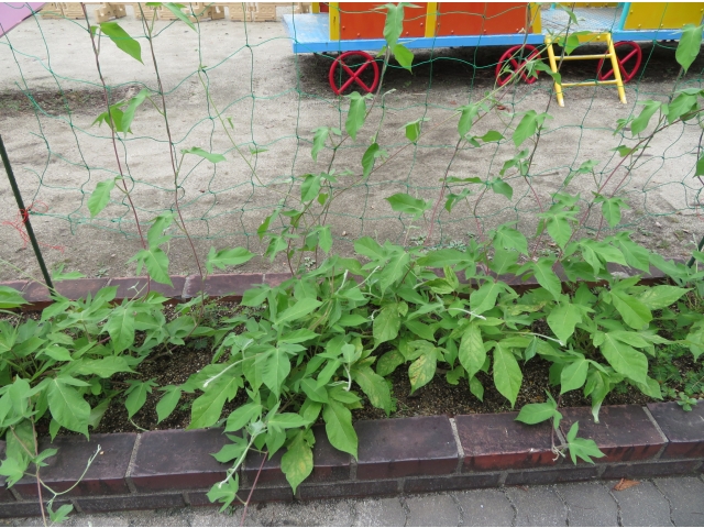 名古屋市環境局から、「アサガオで空気を調べてみませんか」という案内が届いたので、昨年に引き続き年長さんが参加しています。