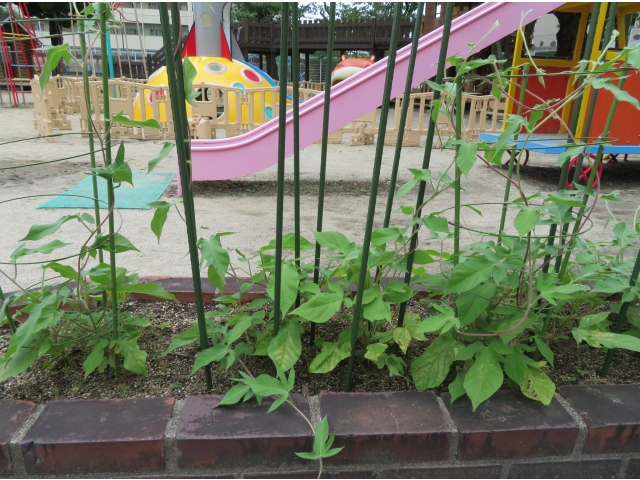 保育園のアサガオを観察して、保育園の空気がきれいかどうか調べてもらいます。年長さん、よろしくお願いします!