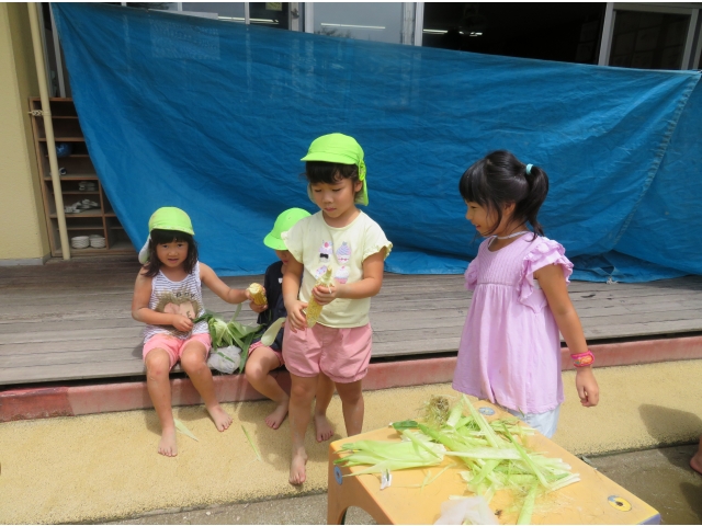おやつにゆでたてのとうもろこしをいただきます!お味はどうかな?楽しみです!