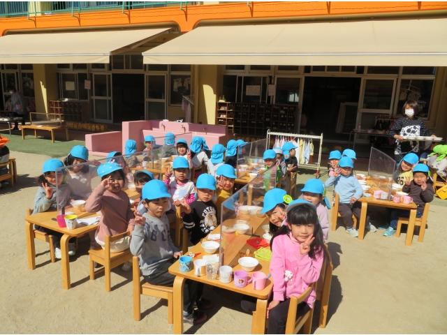 お日さまの下で食べると、美味しさが増すみたいです。今年度もあと1か月。卒園、進級に期待をもっている子どもたち。一日一日を大切に過ごしていきたいと思います。