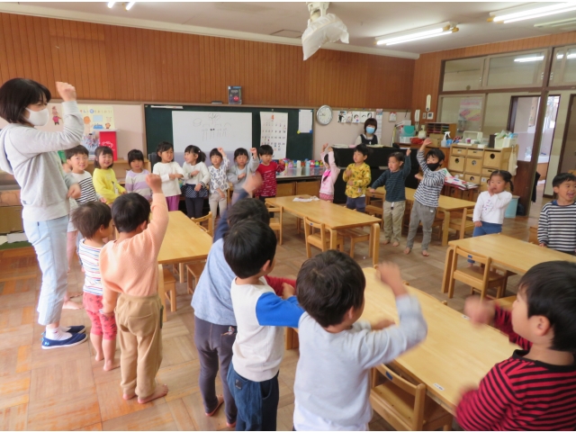 - “日本中のこどもたち”の歌に合わせて踊ります♪