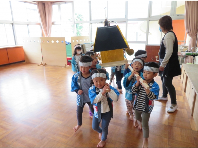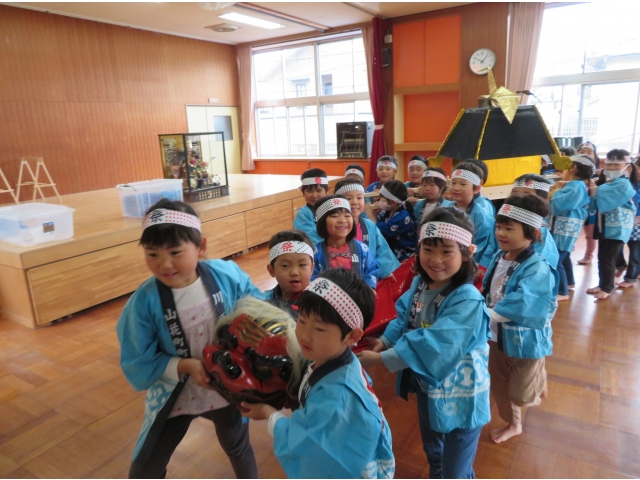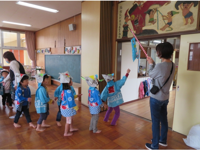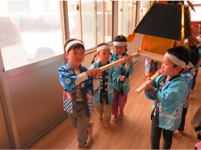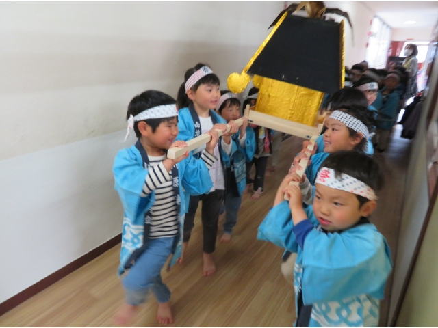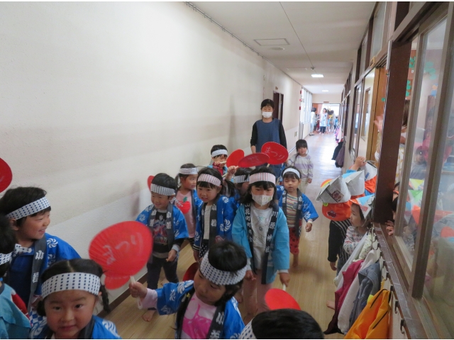あいにくの雨でしたが、室内を子どもたちがねり歩き、元気な声が響きわたっていました。