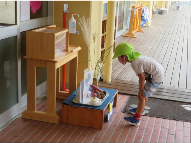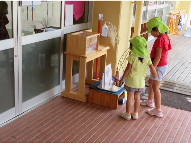 お月見団子、ススキ、畑で採れたかぼちゃなどをお月さまにお供えしました。