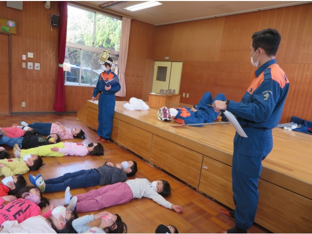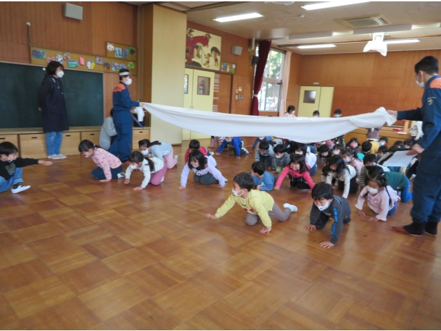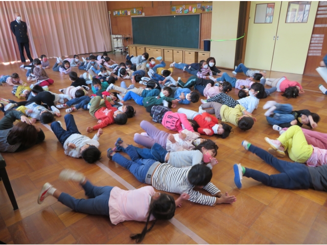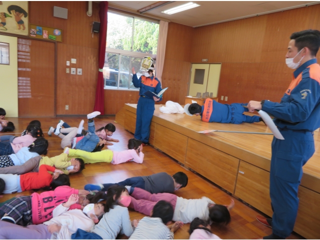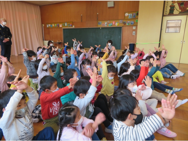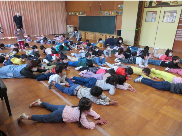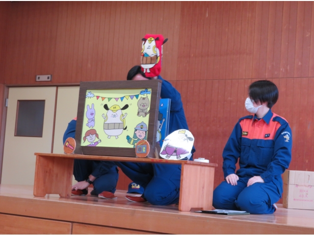 紙芝居や、寸劇によるクイズ、避難の仕方を実際に行ったりしながら、楽しく学ぶことができました。