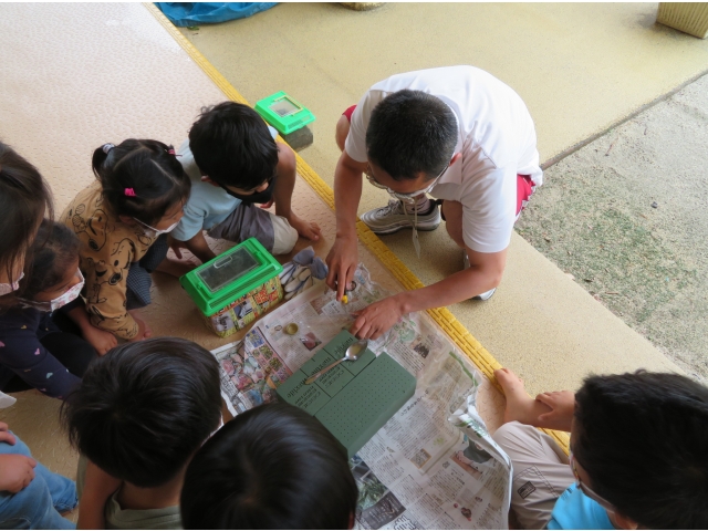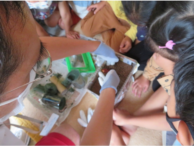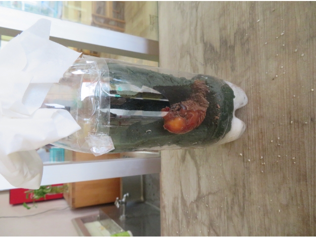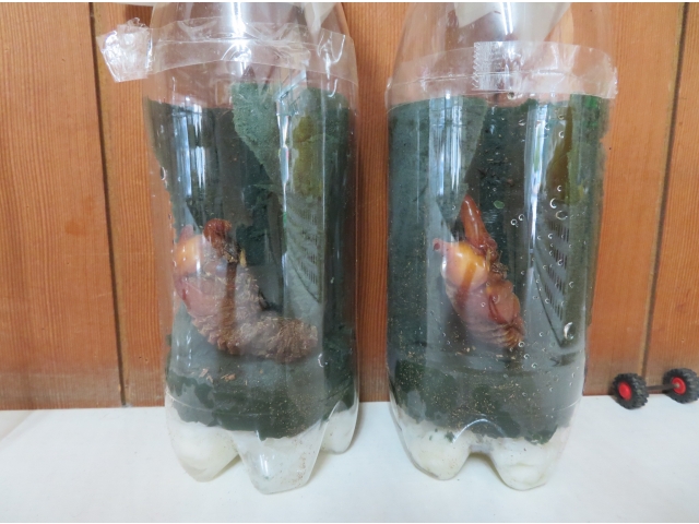 子どもたちがカブトムシの変化を観察できるよう、ペットボトルで作ってくださいました。カブトムシは新しいお家の中でごそごそ動いています。このまま順調にカブトムシの成虫になってくれることを願っています。