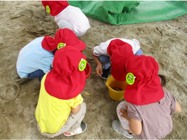 ちゅうりっぷ組のお友だちは、虫探しに夢中です!今日はどんな虫が見つかるかな?