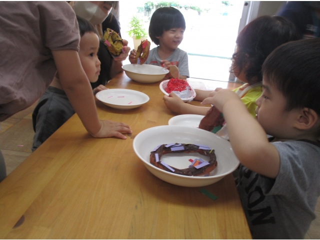 4.5歳さんがお店屋さんに招待してくれました! みんなでどんなお店があるのかな?と楽しみにしながら行ってきました。