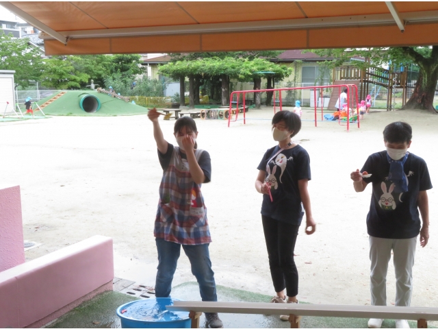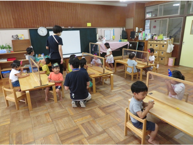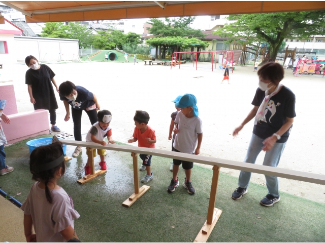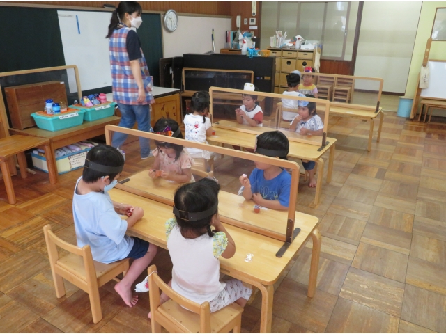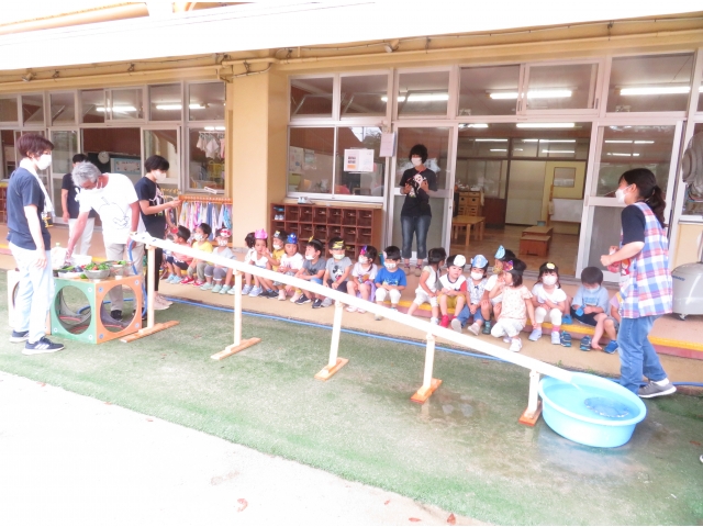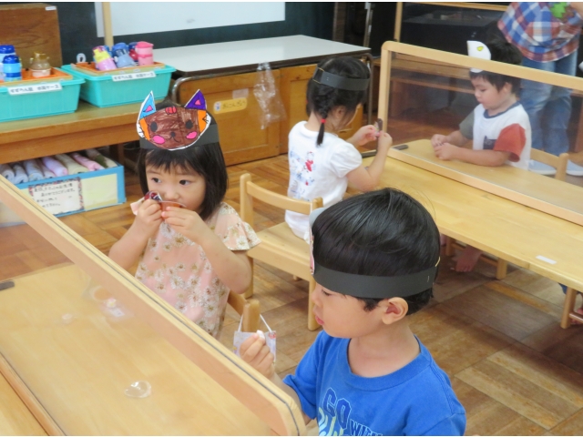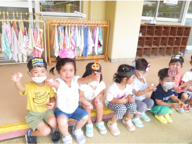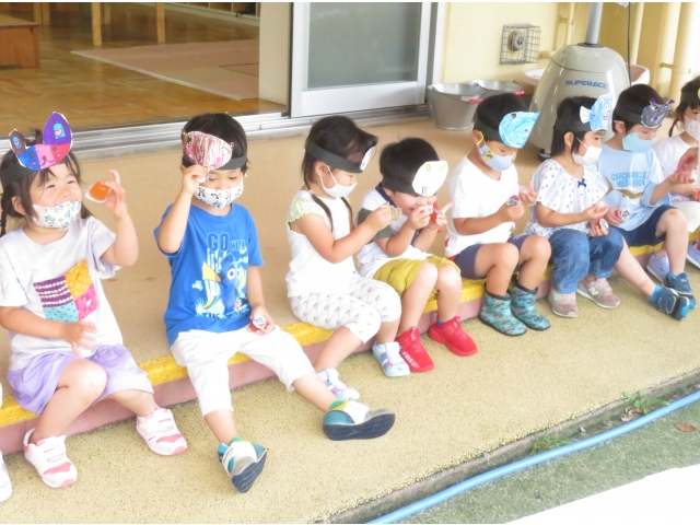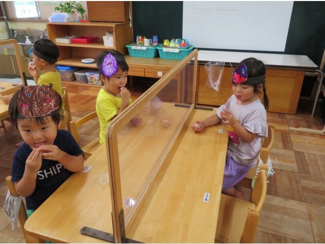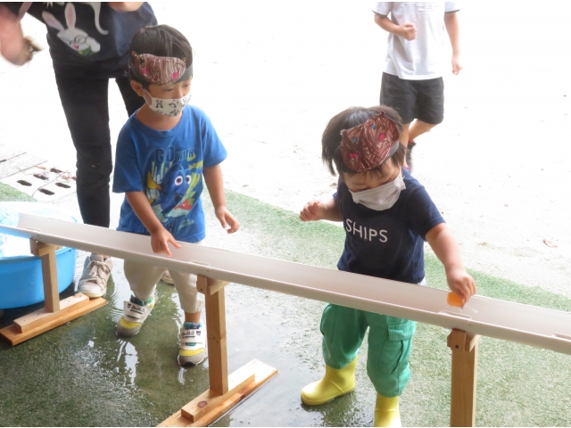 たんぽぽ組・すずらん組のお友だちは、流れてくるゼリーを手で取りました♪