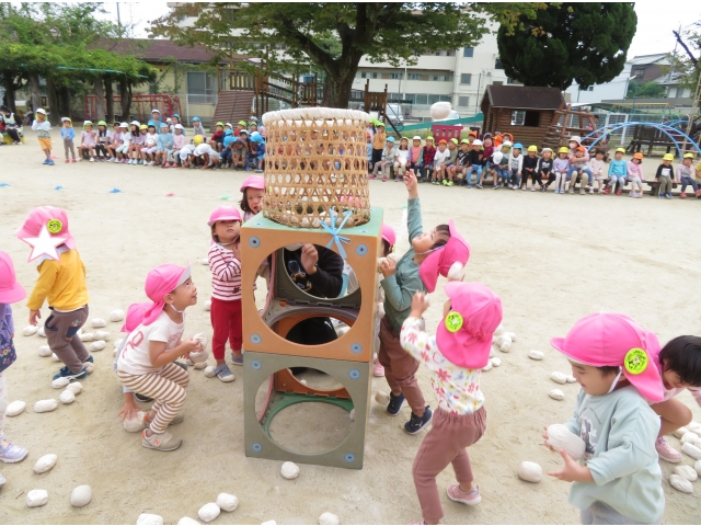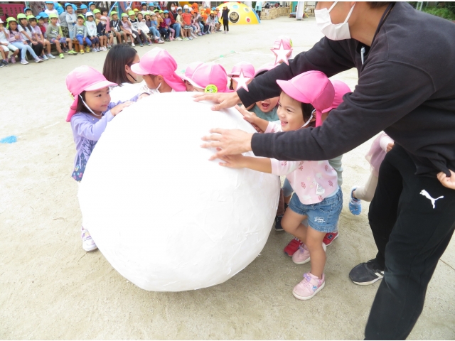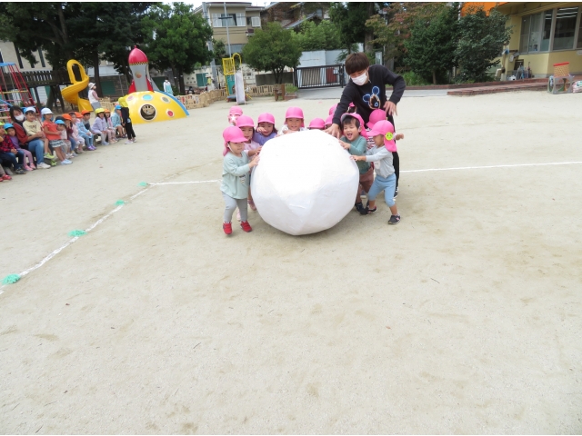大玉ころがしでは、ちゅうりっぷさんに負けてしまったけど、玉入れでは勝つことができ、大喜びしていた子どもたちでした。