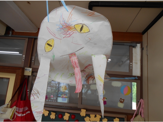 子どもたちがたくさん描いてくれた紙を変身させました。