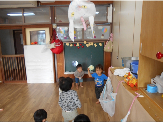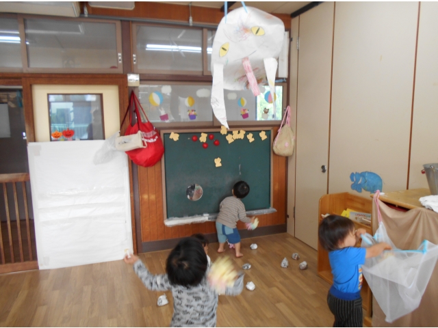 玉入れを経験した子どもたちはお部屋でもボール遊びが大好き💛