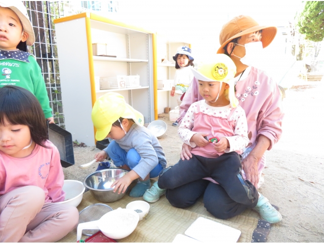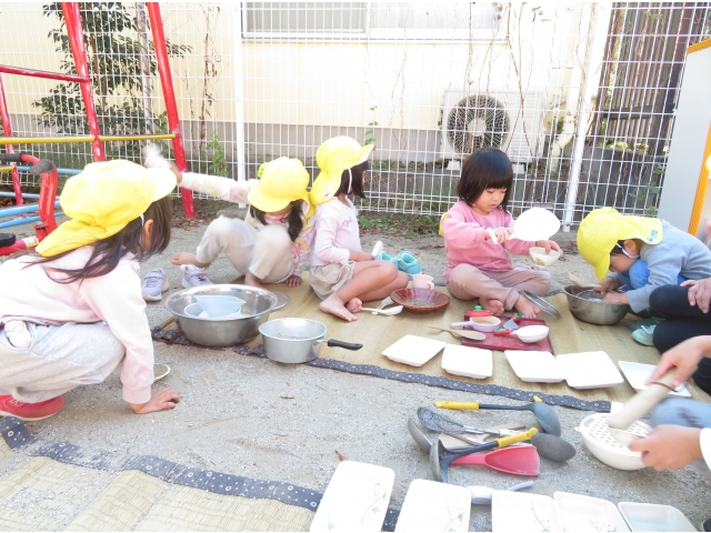 - 「いーれーてー!」ござの上にたくさんのお友だちが集まってきました。
