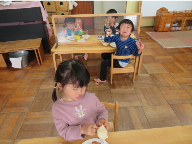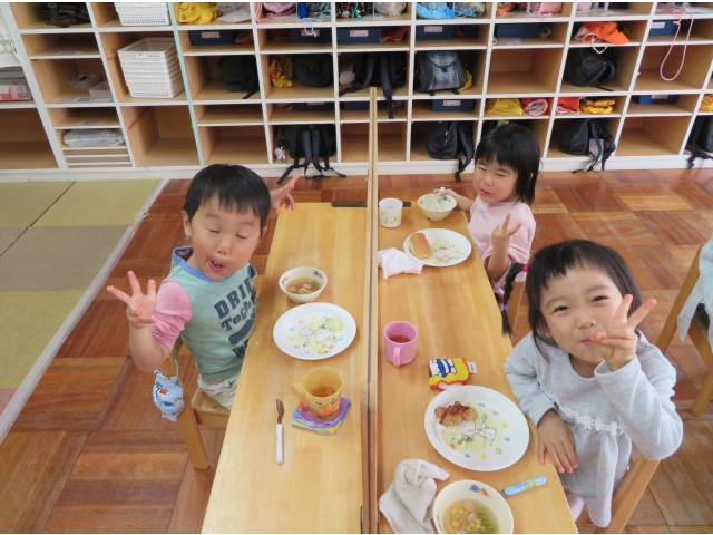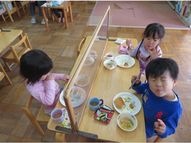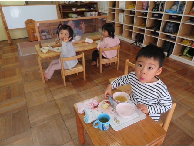 給食の時間が大好きなすずらん組のお友だち。