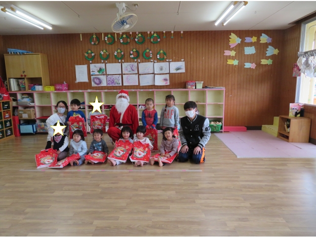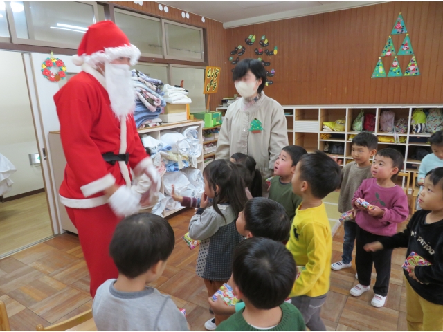 子どもたちは突然のサンタさんに驚いたり、喜んだり…色々な表情を見せてくれました。