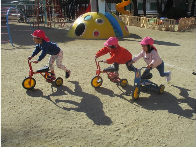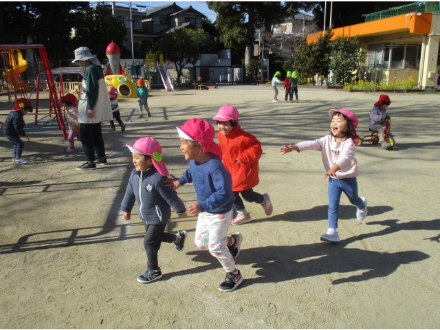 子どもたちは、外で遊ぶのが大好きです!!保育者が「園庭に遊びにいくよ!」というと「やったー!!!」と飛び跳ねながら喜んでいます!