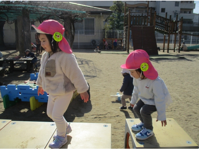 - カラーボックスを並べて、その上を歩いたり、ジャンプをして楽しんでいます。