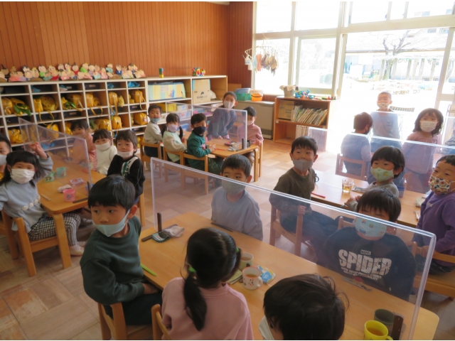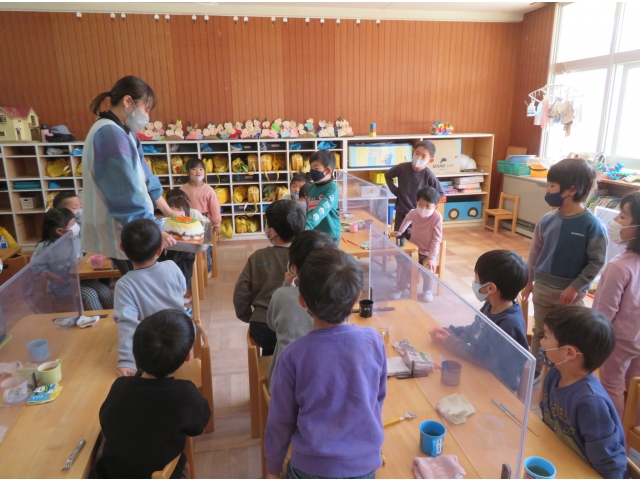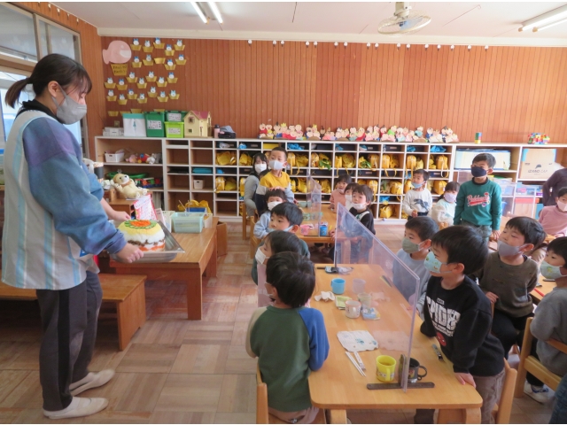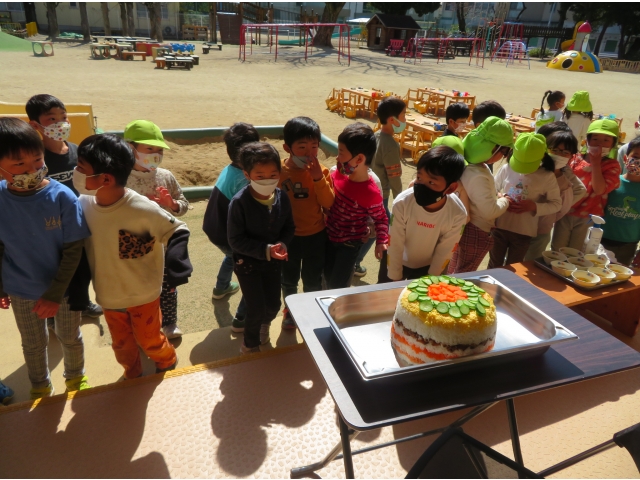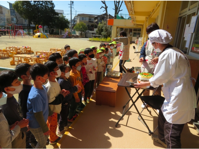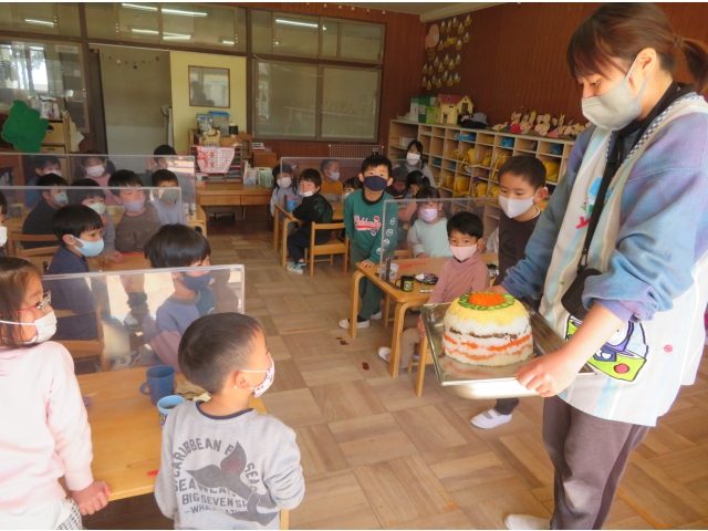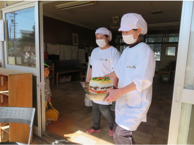 - 給食室からきりん組のお友だちにサプライズ!