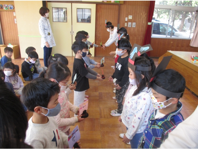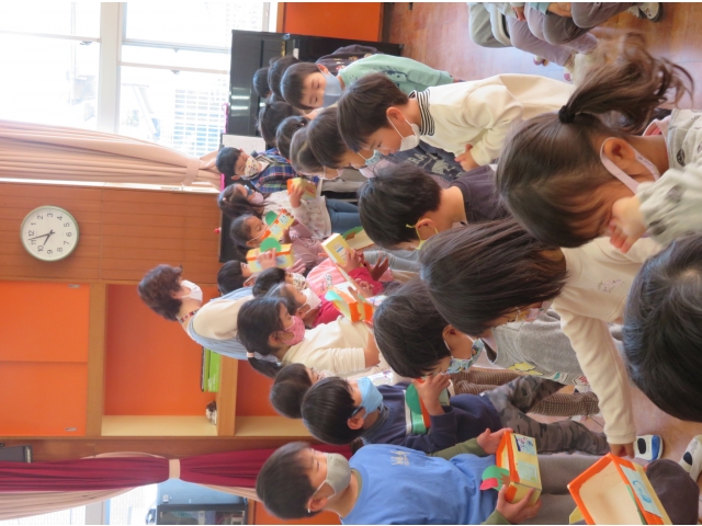 たんぽぽ組、すずらん組のお友だちから年長組のお友だちへプレゼント🎁