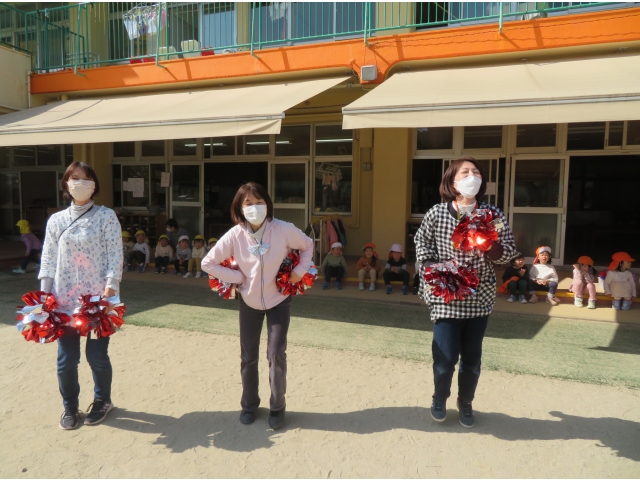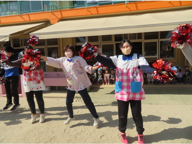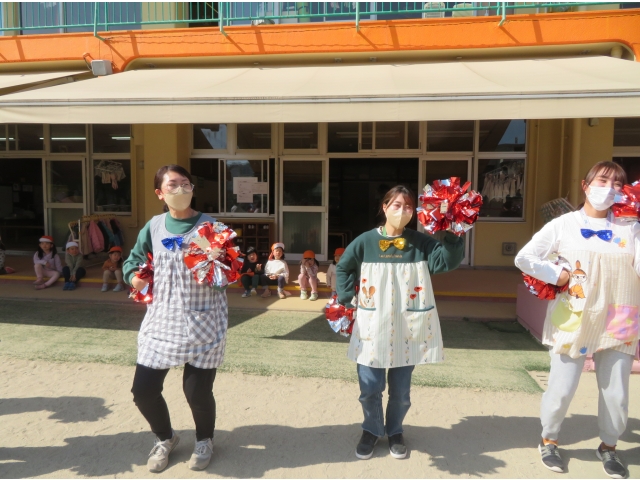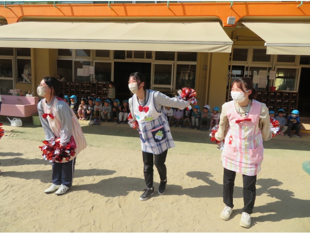 昼からは園庭で先生たちからの踊りのプレゼントを