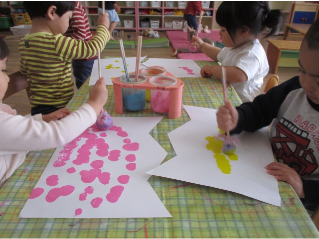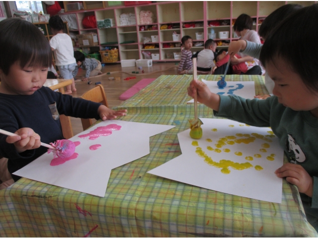 たんぽを使って絵の具でこいのぼりをかわいく作りました!