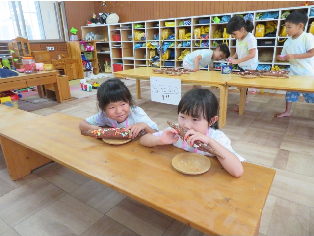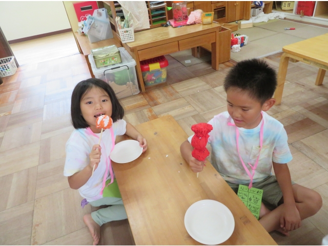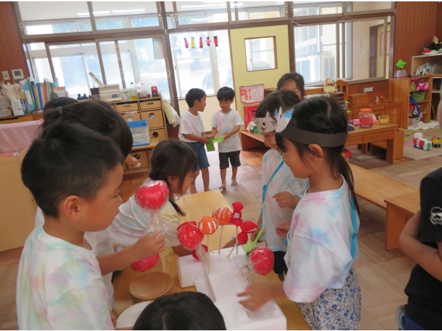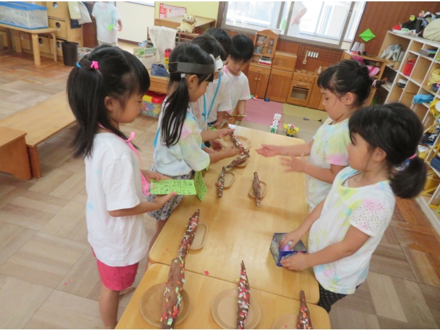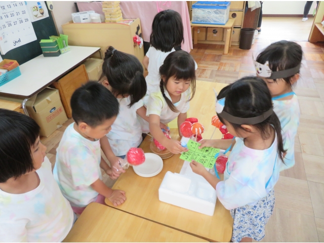 ぞう組、きりん組のお友だちがお客さんとお店屋さんに分かれて、交代で楽しみました♡