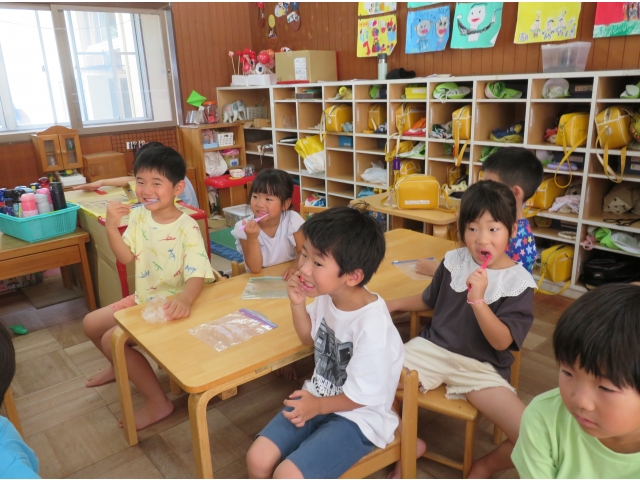 7/31に昭和保健所から管理栄養士さんと歯科衛生士さんが来てくださり、栄養のある食べ物についてのお話と正しい歯の磨き方について教えて頂きました!