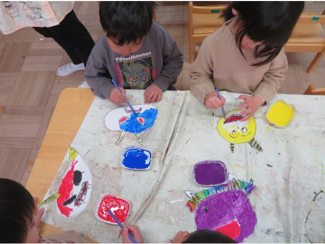 最後は好きな色の絵の具で塗っていきます