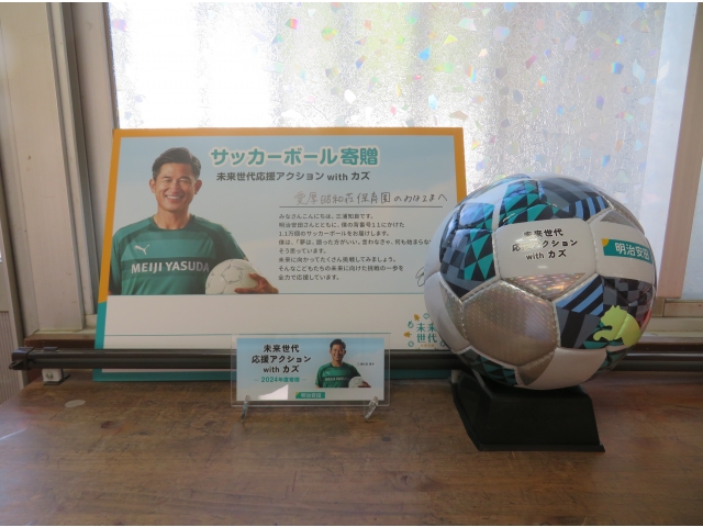 このつながりで、昨年末に明治安田さんと三浦知良選手がコラボしたサッカーボールを届けていただきました。