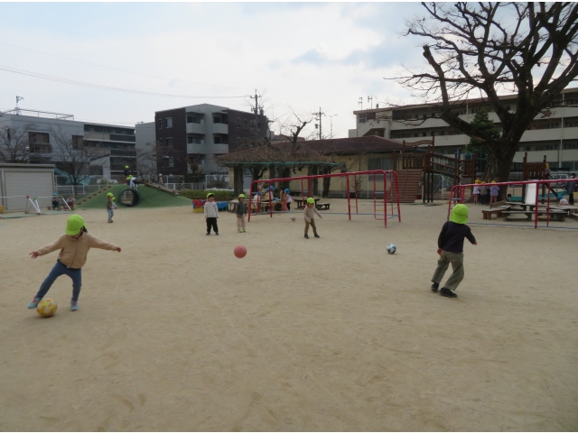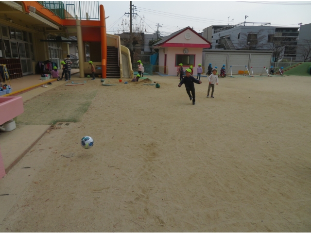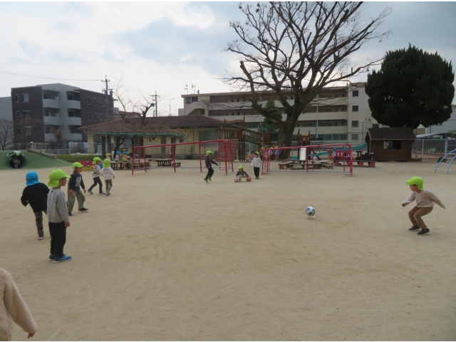 寒い毎日ですが、子どもたちは広い園庭で元気に遊んでいます。