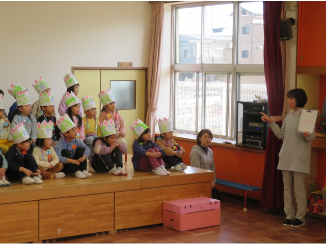 - 園長先生からのお祝いの言葉を真剣に聞きます!