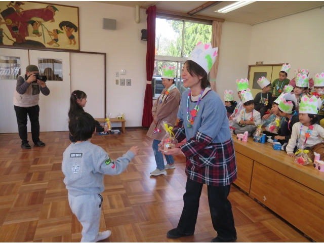 卒園を祝う会当日は、プレゼントされたものを身につけて会に参加しました。