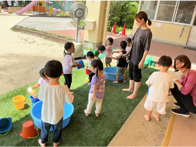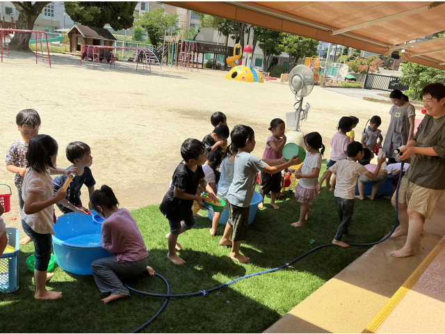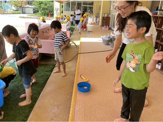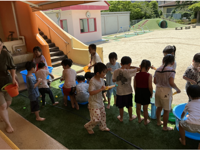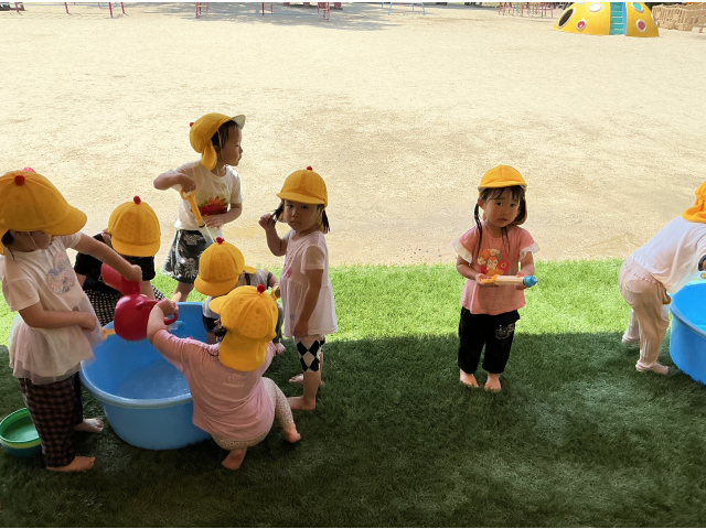 幼児クラス、今年初めての水あそびをしました!!