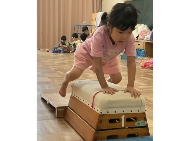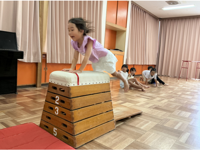 - 跳び箱で使う手の力をつけるために、アシカ歩きをしました