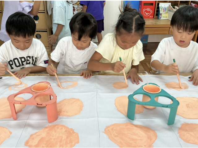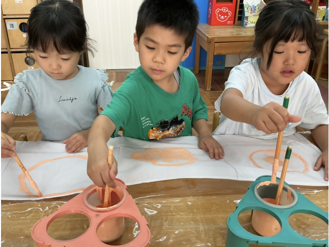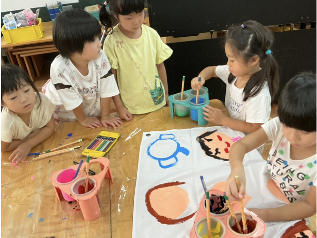 - 絵の具を乾かす時も、みんなで息を合わせて持って行きます