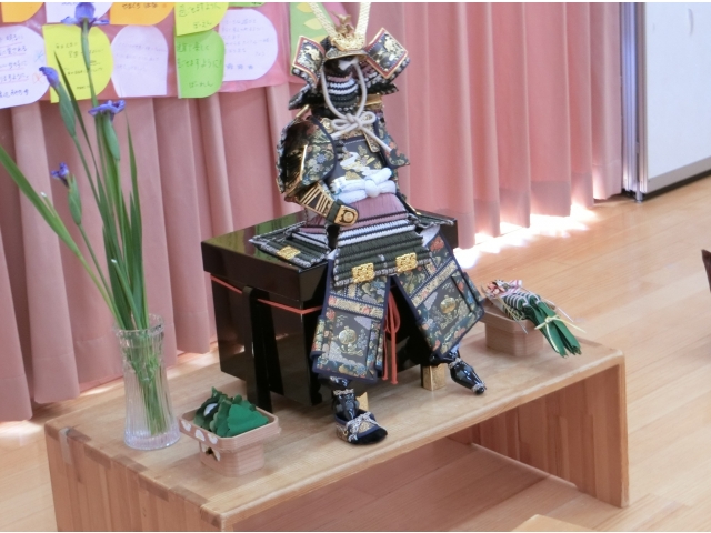 こいのぼりや五月人形を、保育室に移動させると、その迫力に「おお~!」と声を出している子どもたち。