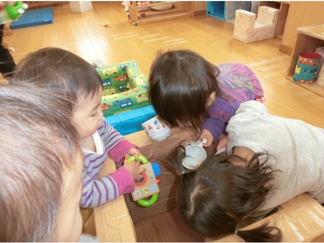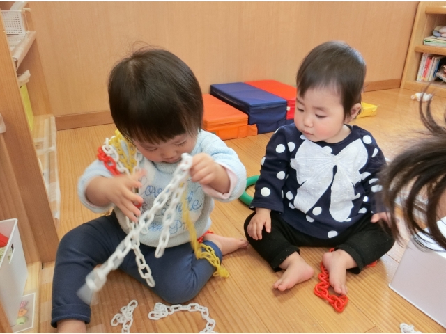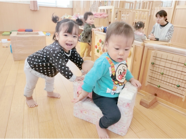少しづつ言葉も出てきており、その分、自分の思いもしっかりと主張するようになっています。玩具の取り合いや、思いのぶつかり合いから、友だちと喧嘩をする姿も多くなり、保育室はいつも活気に満ち溢れていますよ(#^^#)
