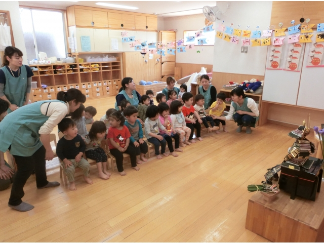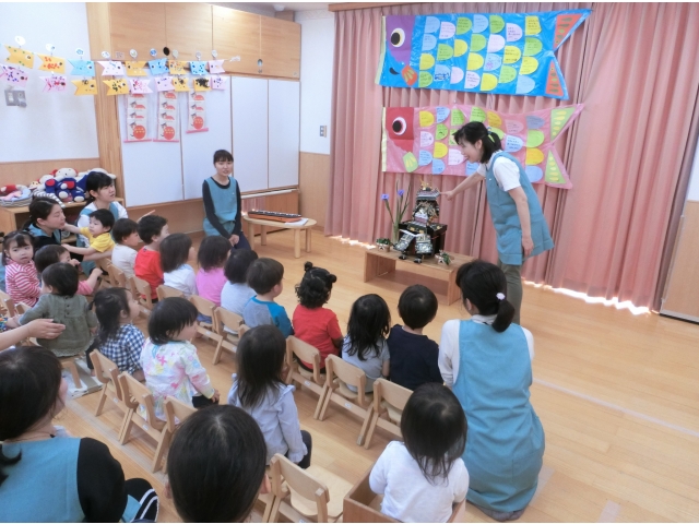 子どもの日の集いでは、園長先生から由来を聞いたり、