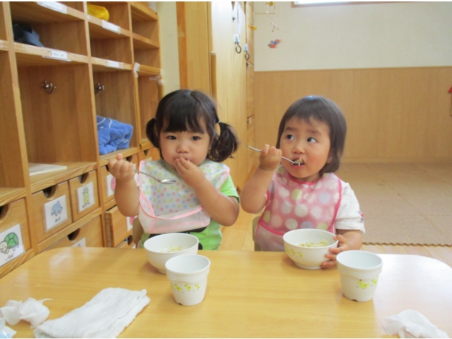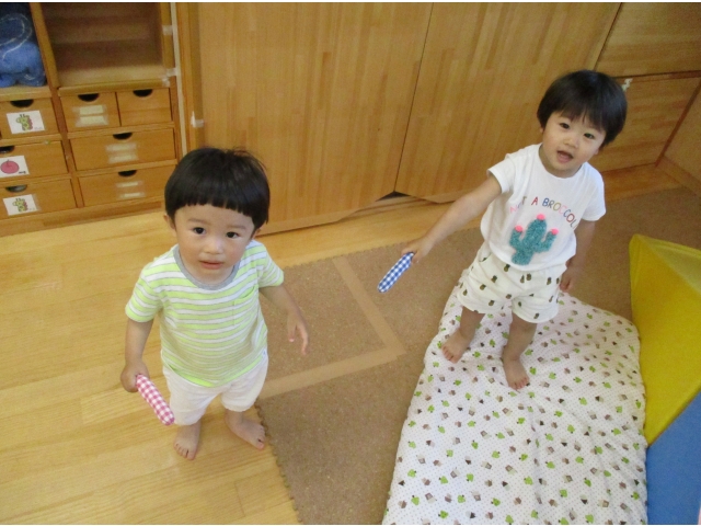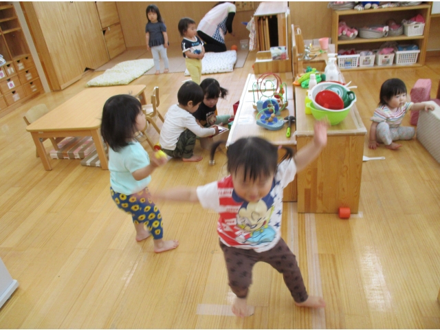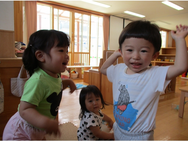 子ども達は園生活にも慣れ、友だちと触れあってみたり、一緒に遊んでみたり、また、自己主張をたくさんするようになり、いろいろな思いを保育者や友だちに、一人ひとりの伝え方で知らせてくれるようになりました!(^^)!