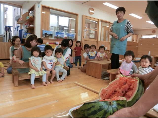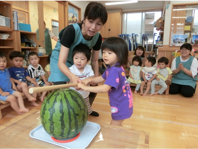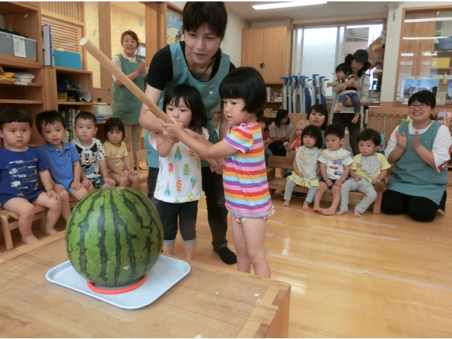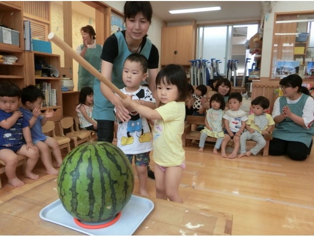 つみき保育園ではすいか割りを行いました。(*^-^*)