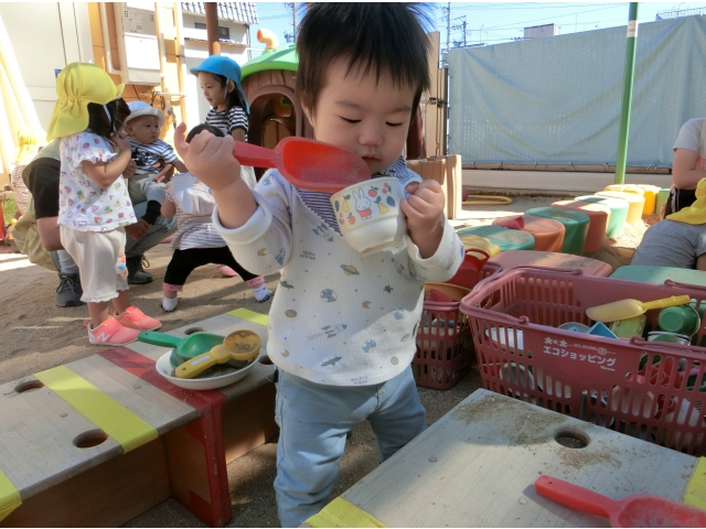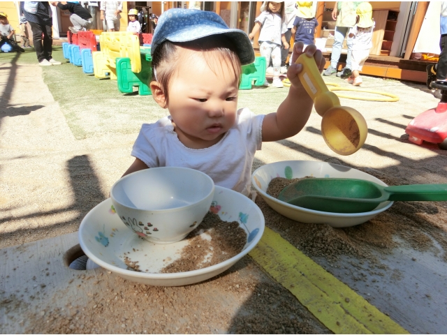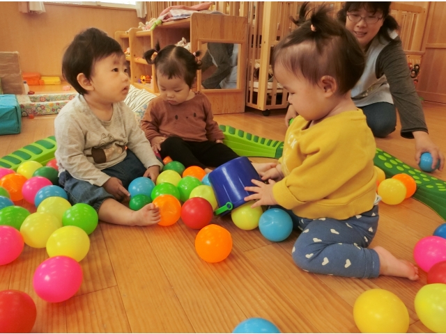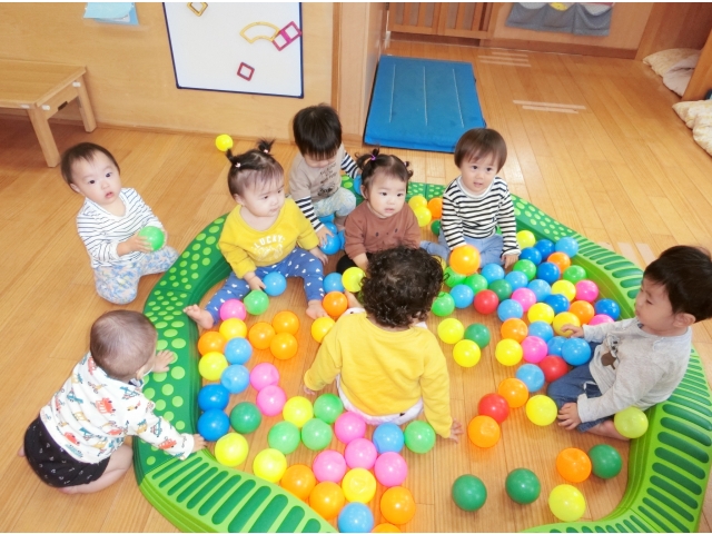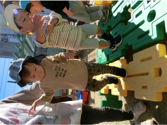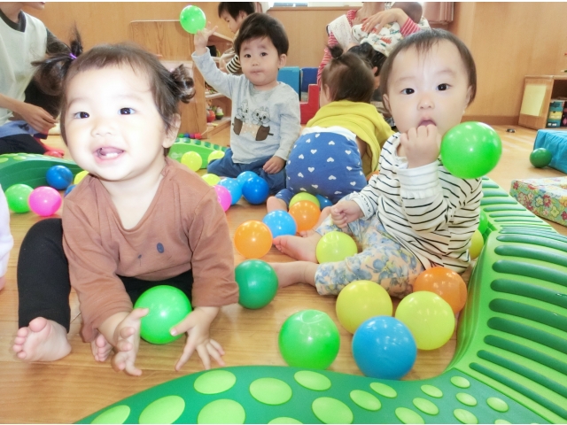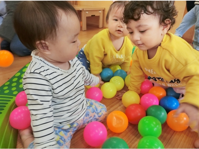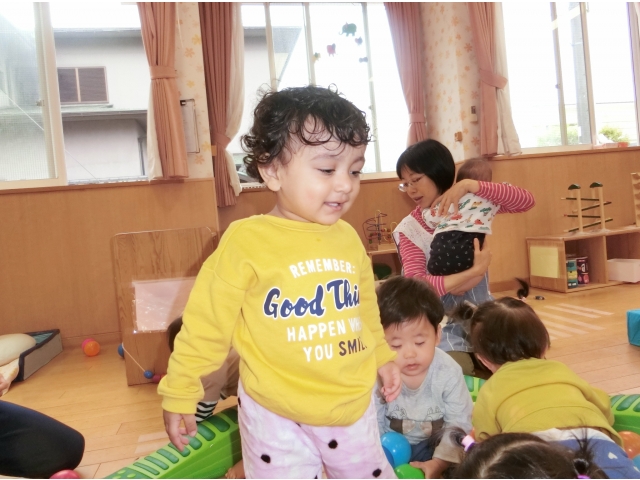 10月も暑い日が続いていましたが、台風が過ぎると、急に過ごしやすい気候になりました。ひよこ組の子どもたちは、心地よい季節の中、園庭で砂遊びをしたり、動き回ったりと活発に遊んでいます!もちろん、部屋の中でも、ボールプールで泳いだり、一本橋を手をつないで歩いたりと、出来ることがたくさん増えてきて、楽しみ方も広がっています!