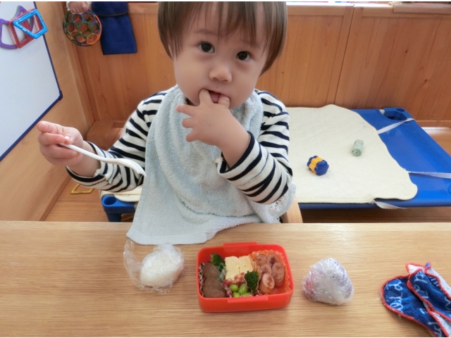そしてこの日は、楽しみにしているお弁当の日😊大好きなおかずを弁当箱の中で見つけては、手を伸ばす姿も見られました!お弁当作り、ありがとうございました♡