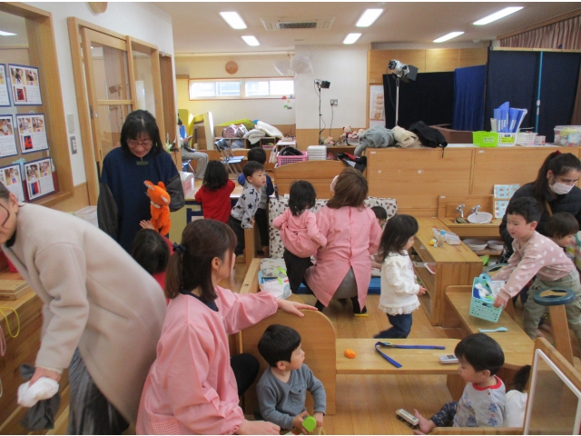 子どもたちは、準備している様子を見て、何が始まるのかな?と
