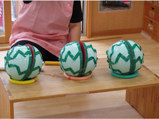 保育者が、トントントン^m^とスイカを叩くと、何か音が…