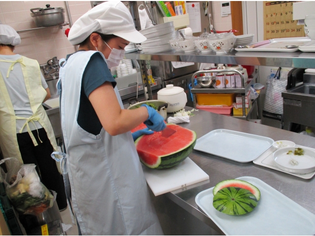 子ども達の中には、スイカの皮(緑の部分)まで、食べようとする子もいました(;^ω^)